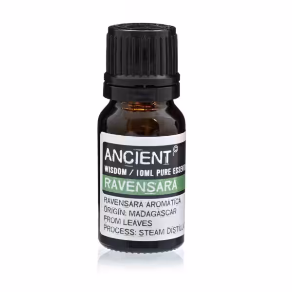 This Ravensara Essential Oil is a powerful antiseptic, antibacterial and antiviral, used to treat internal and skin conditions. Ravensara Essential Oil is used in aromatherapy to treat ailments caused by excess mucous and phlegm in the respiratory tract.
