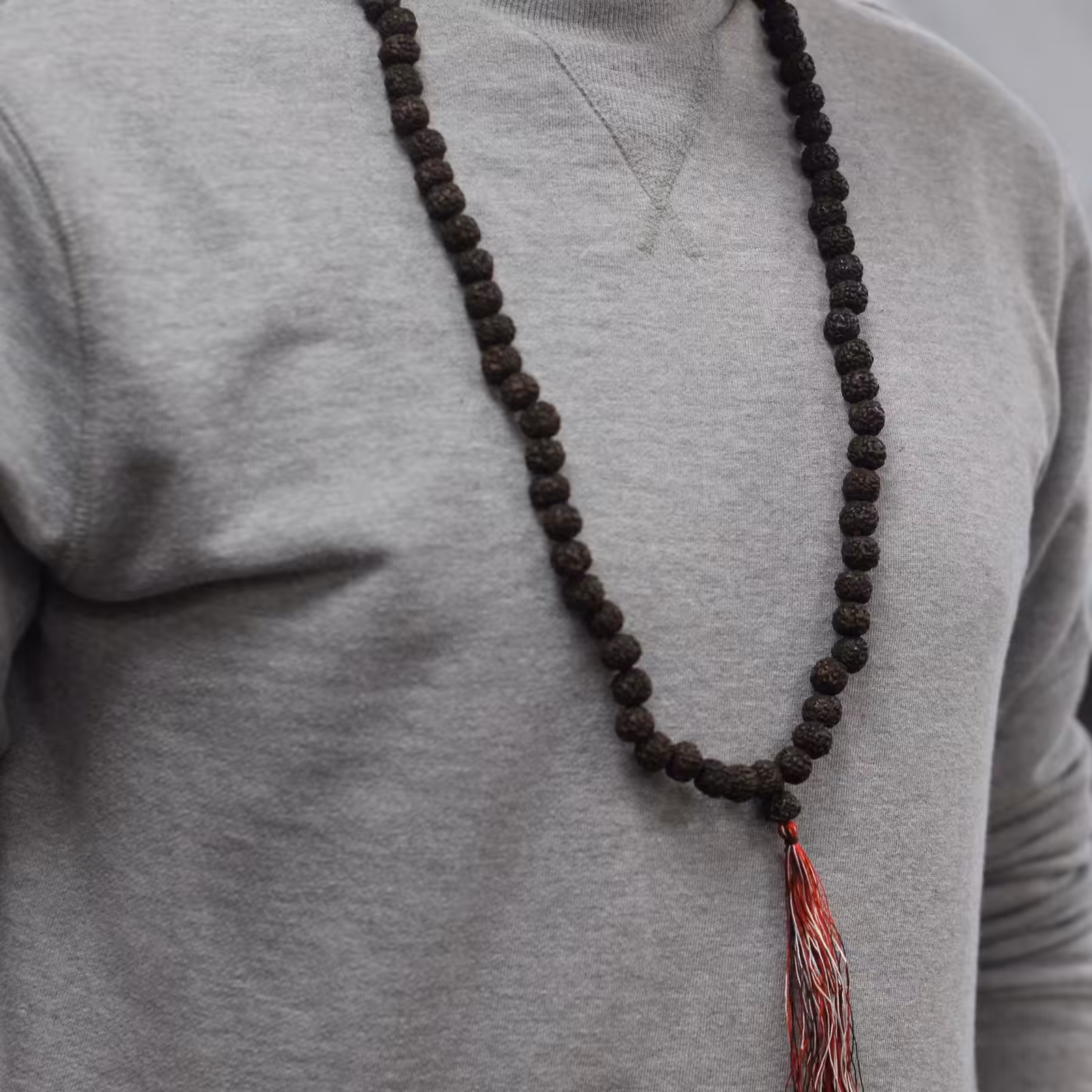Rudraksha Bangles and Malas. The Rudraksha Buddah Mala is a rosary containing 108 beads finished off with a beautiful chunky 9 cm tassel.