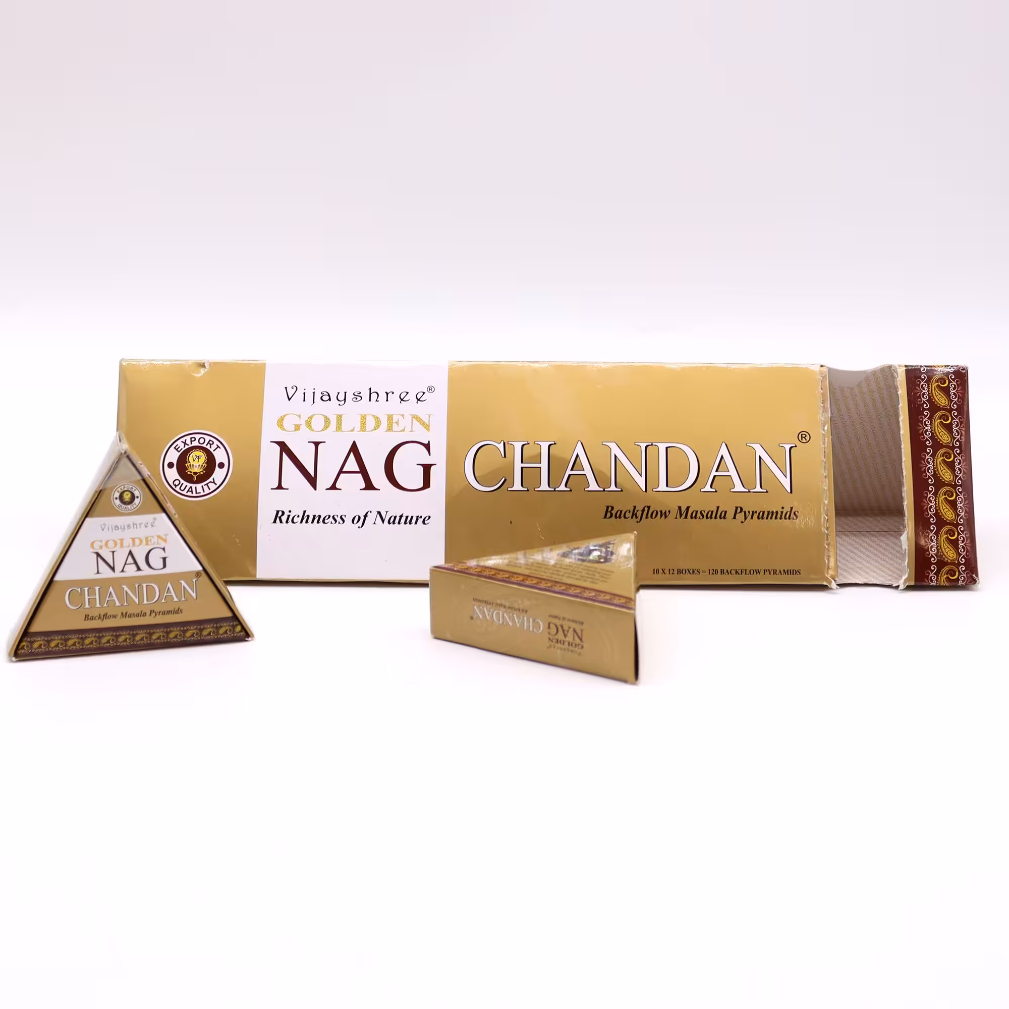 Jumbo Golden Nag – Chandan Back Flow Incense Cones, where timeless fragrance meets captivating visual enchantment. Experience the essence of Chandan, known for its serene and woody aroma that has been cherished for centuries.