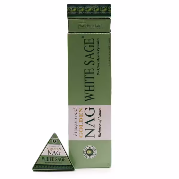 Jumbo Golden Nag – White Sage Back Flow Incense Cones, where evocative aroma meets entrancing visual enchantment. Immerse yourself in the pure essence of White Sage, a fragrance esteemed for its purifying and spiritually invigorating properties.