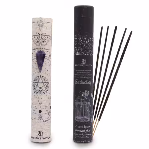 Let the room slip into a softer, darker mood. This Seduction Spell Incense blends deep Midnight Oud with the quiet energy of amethyst, creating a ritual moment that feels intimate, warmand a little bit mysterious.