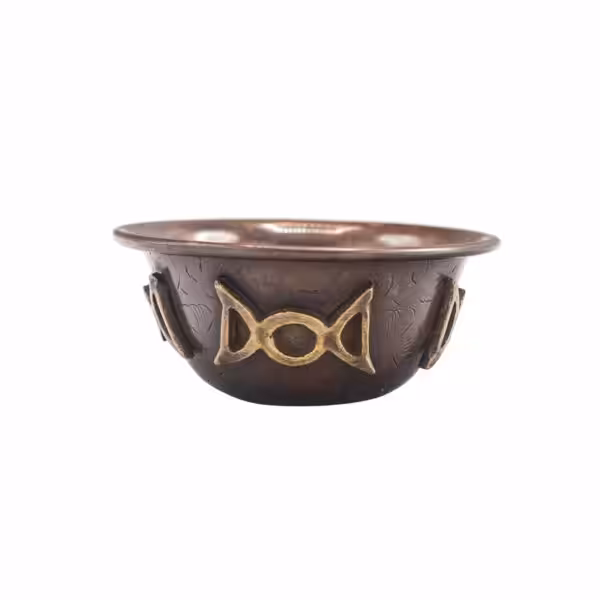 Antique Copper Ritual Bowl with Triple Moon can be used for many purposes such as burning incense, herbs, energy cleansing, meditation. It is perfect for creating a magical atmosphere and unique spiritual experiences.