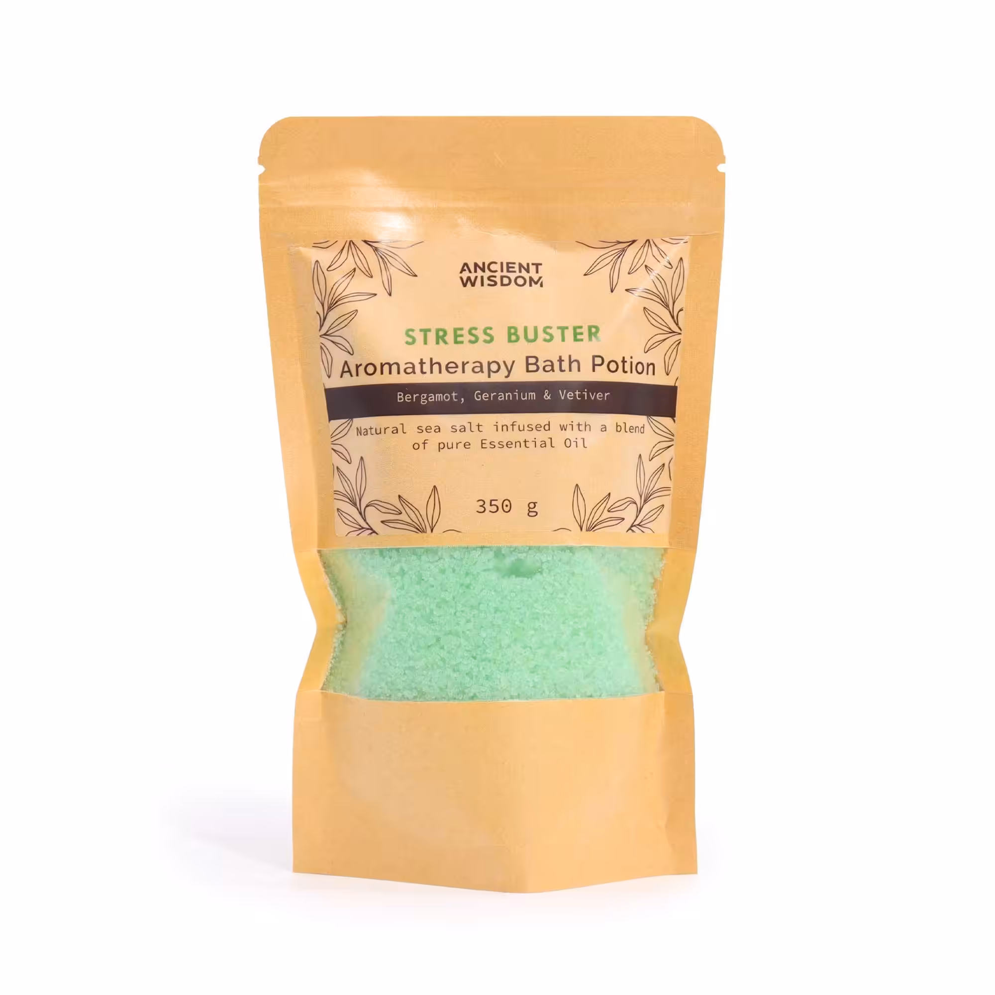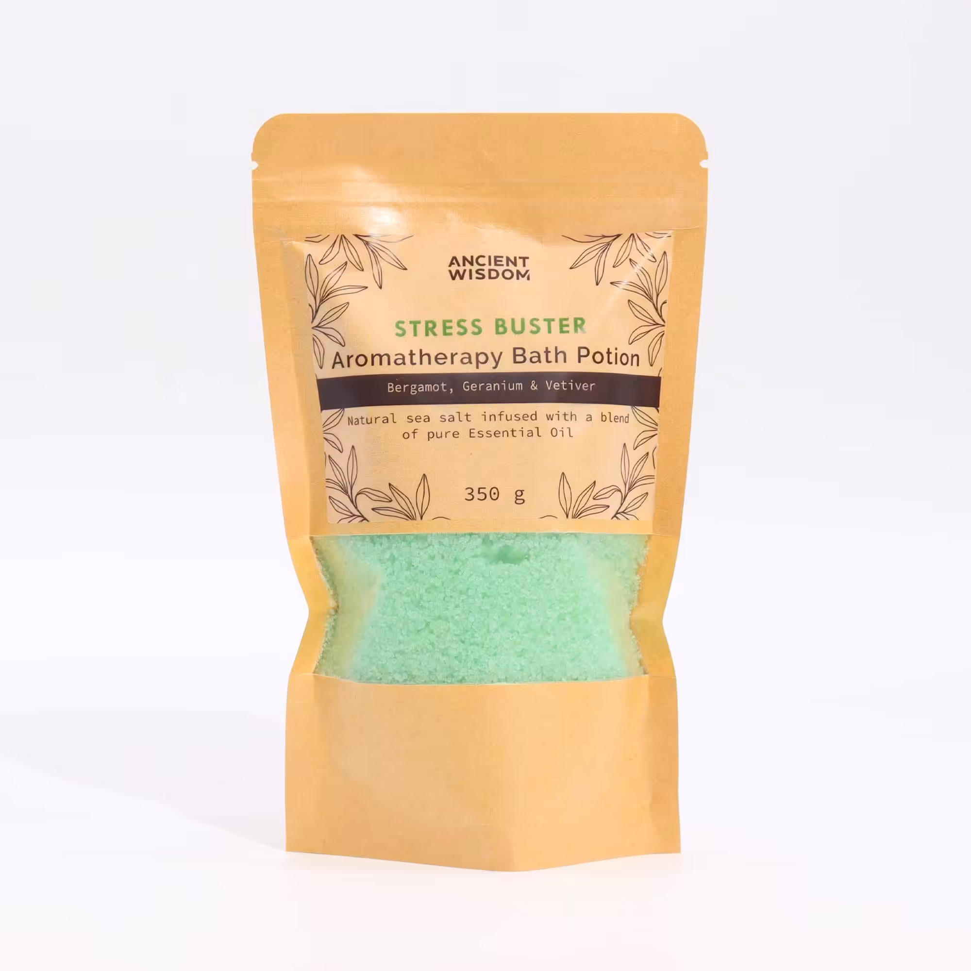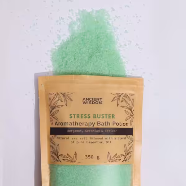 This Aromatherapy Bath Potion is made with an artful blend of Pure Essential Oils and sea salt.