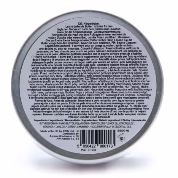 Key features of this body butter include its high concentration of natural ingredients, which work together to provide intense hydration and restore skin elasticity. The geranium essential oil is known for its calming properties, helping to alleviate stress while leaving your skin feeling soft and revitalised. With a non-greasy formula, the body butter absorbs quickly, making it ideal for use throughout the day or as part of your evening wind-down ritual.