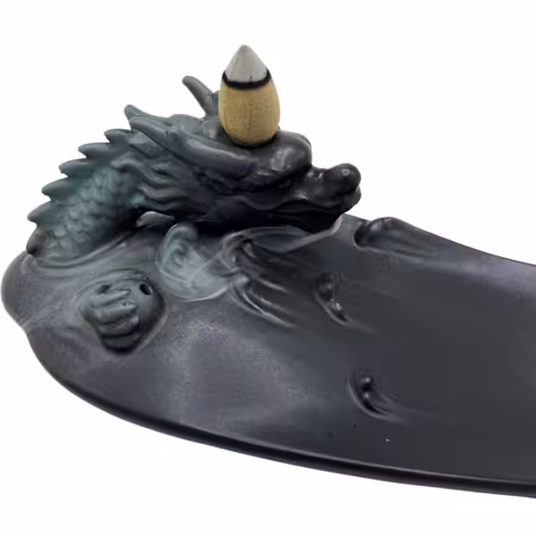 Transform your home into a serene sanctuary with the Backflow Incense Burner – Dragon in Pool. This stunning backflow incense burner captures the essence of tranquility, featuring a beautifully crafted dragon perched on the edge of a calming pool. Perfect for meditation spaces, living rooms or anywhere you wish to unwind, this burner enhances both the aesthetic and aromatic experience of your environment.