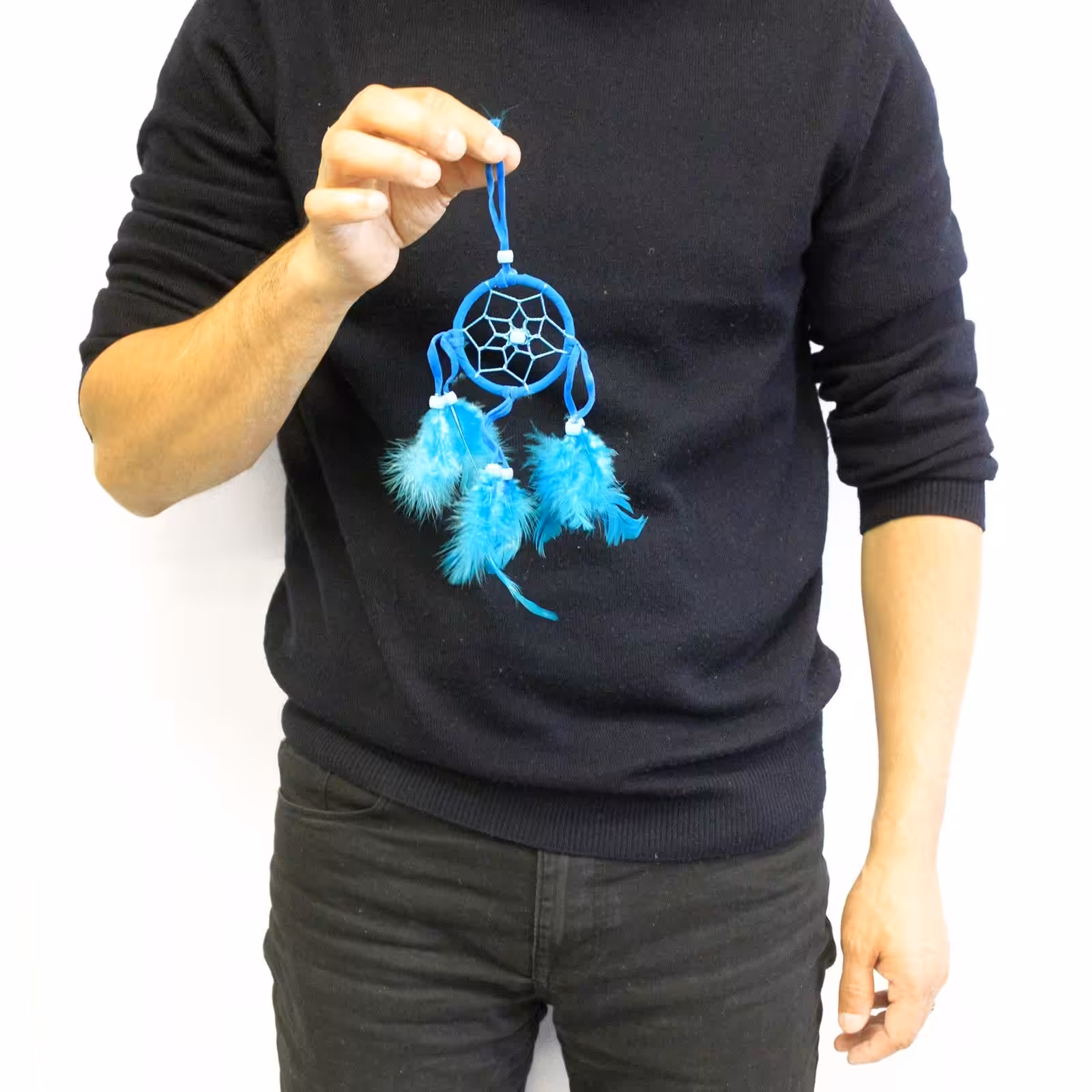Native Americans believe the night brings good and bad dreams. The Dream catcher when hung near your bed catches the dreams. The good dreams know how to pass through the dream catcher, the bad dreams not knowing the way get tangled in the dream catcher and perish with the first light of dawn..
