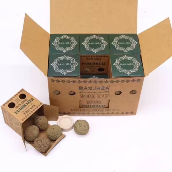The Banjara Smudge Beads in Patchouli offer a unique way to bring the calming and grounding properties of this aromatic herb into your home or sacred space. Designed for those who appreciate the spiritual significance of smudging, these beads are perfect for creating a serene atmosphere while also serving as a beautiful decorative element in your environment.
