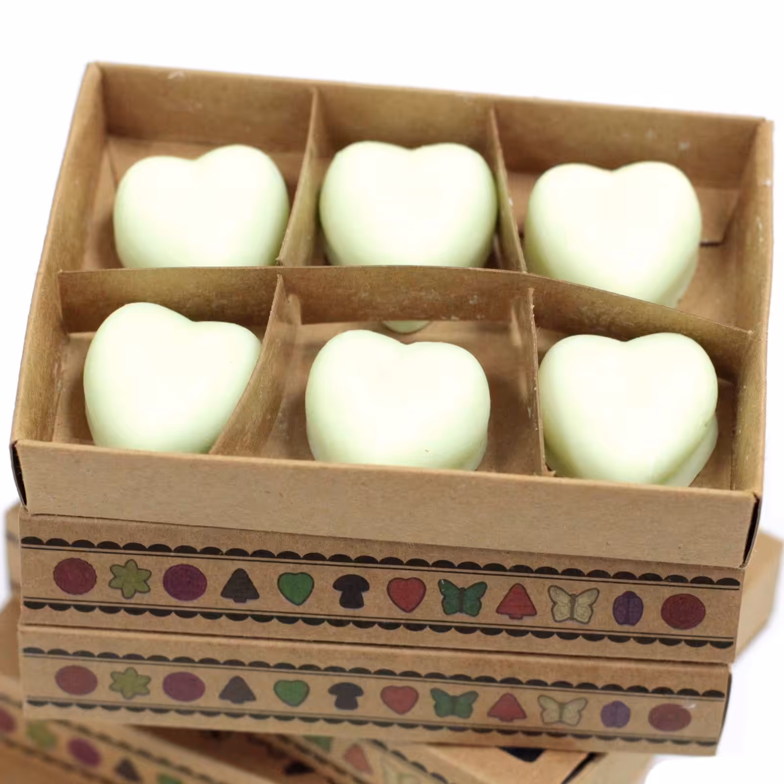 In each matchbox contain 6 wax melt separated by cardboard dividers.