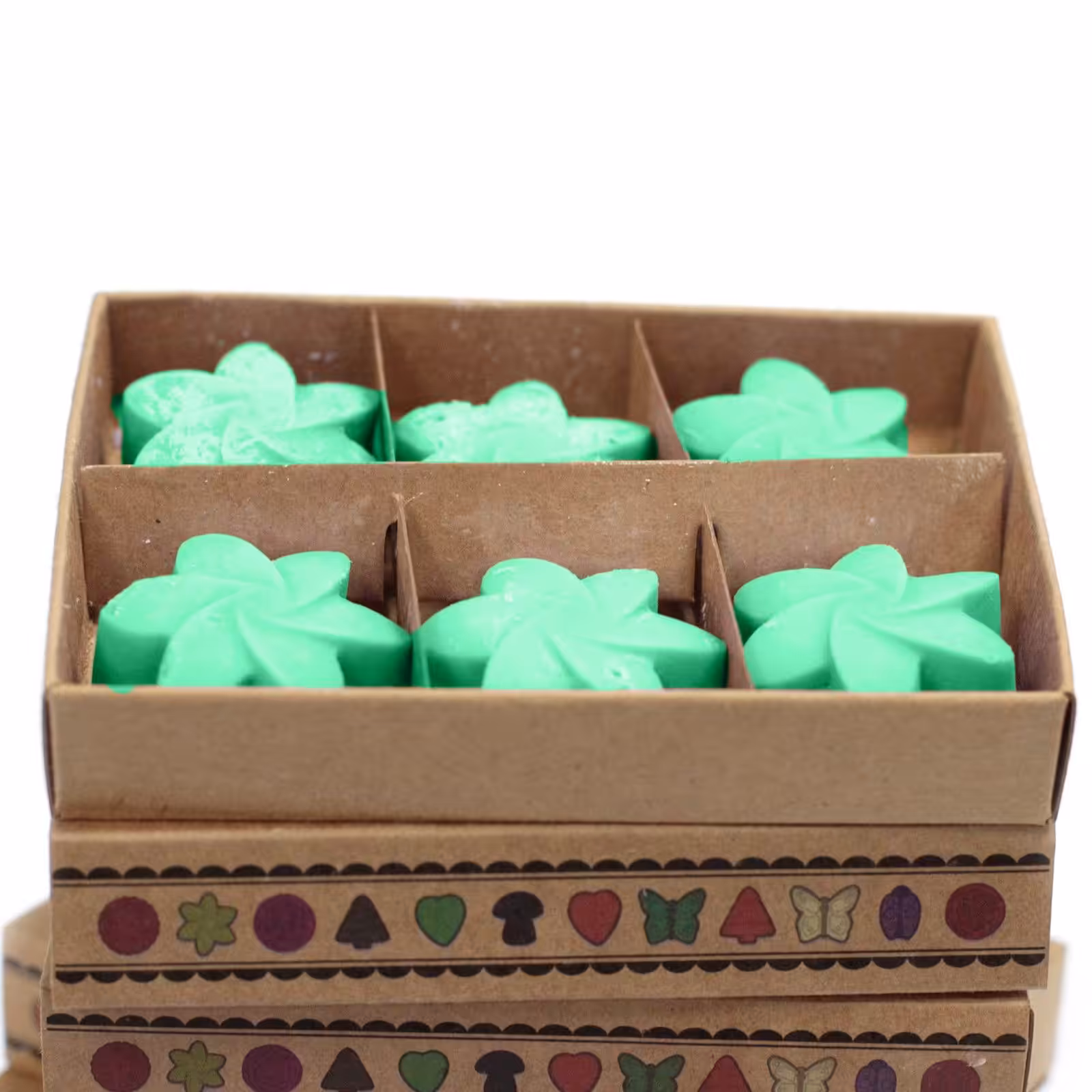 In each matchbox contain 6 wax melt separated by cardboard dividers.