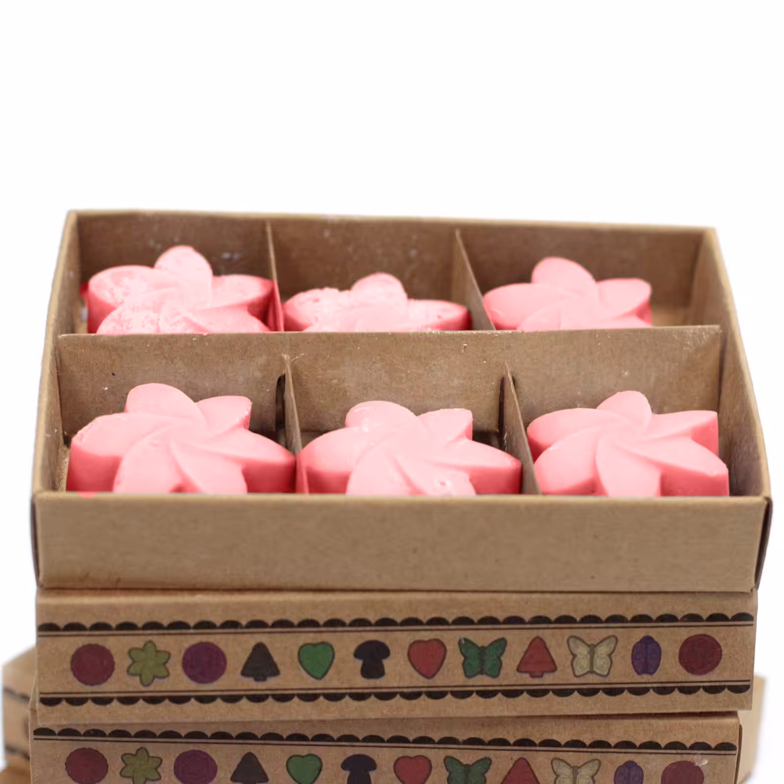 In each matchbox contain 6 wax melt separated by cardboard dividers.