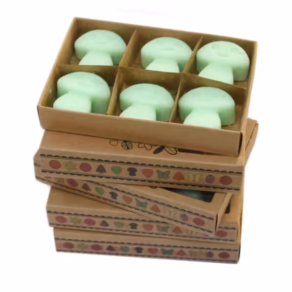 In each matchbox contain 6 wax melt separated by cardboard dividers.