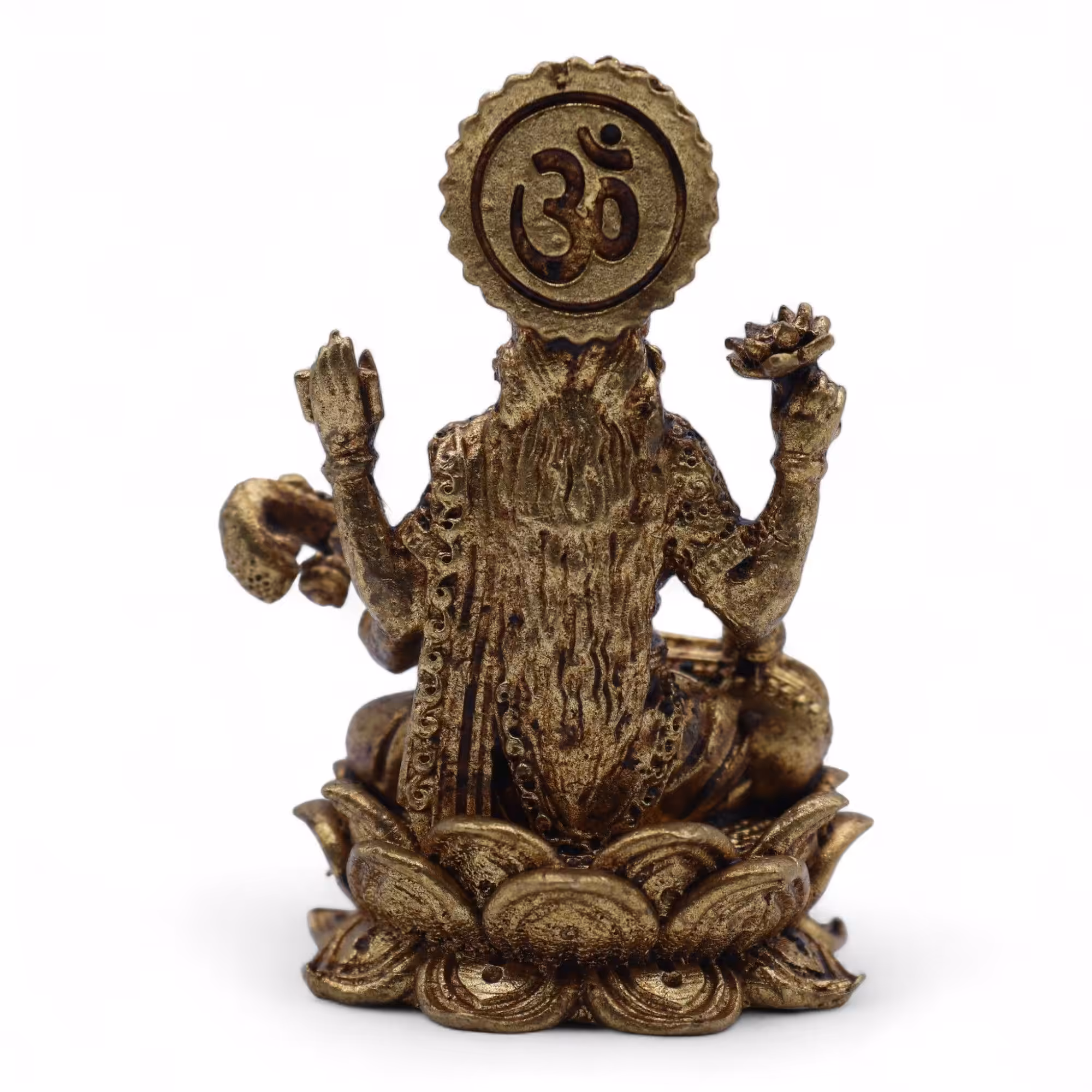 This handcrafted brass miniature depicts Goddess Saraswati, the Hindu deity of wisdom, musicand learning. Seated gracefully on a lotus pedestal, she holds her signature veena, symbolising knowledge and creativity.