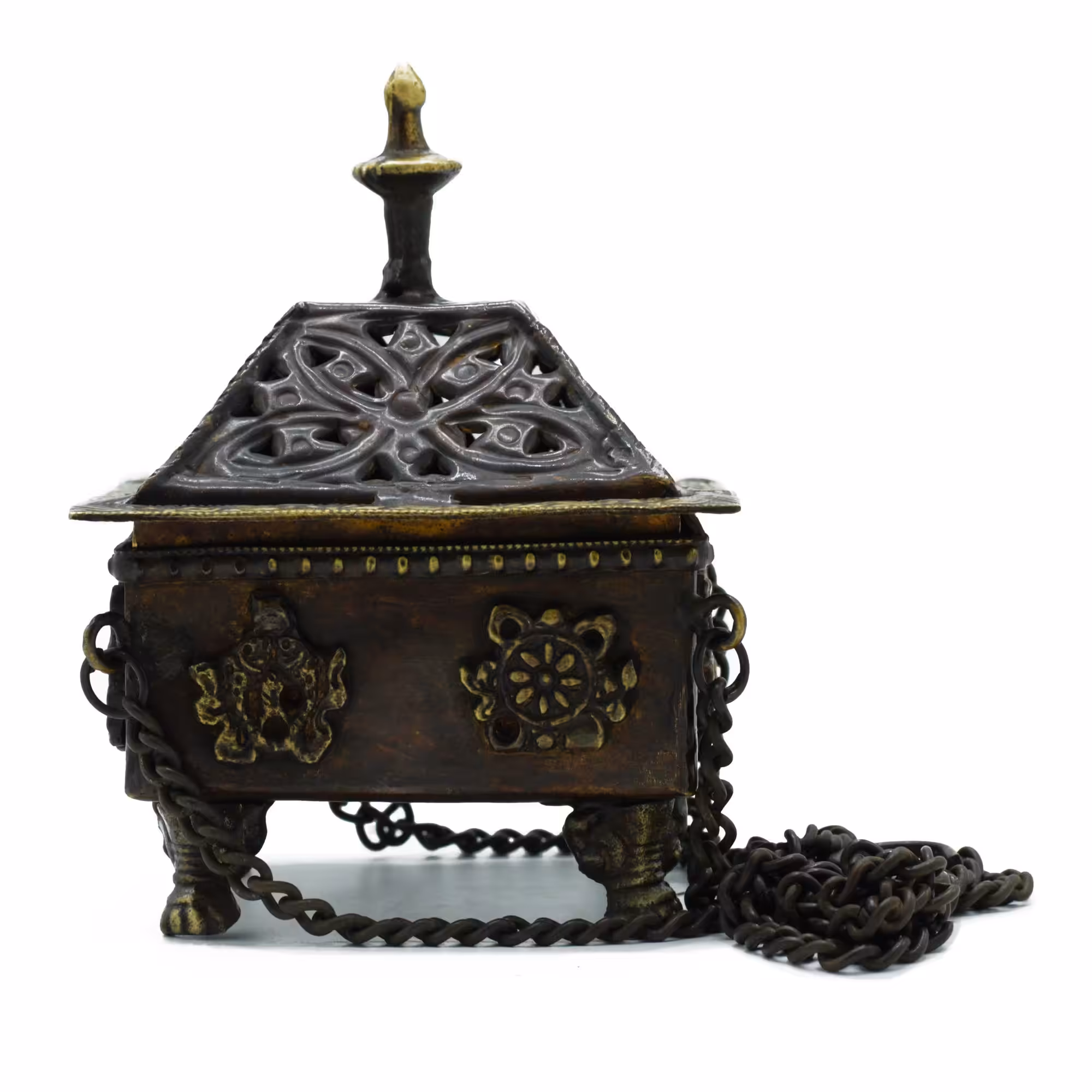Brass Tibetan Burner – Eight Symbols Square Hanging Pot