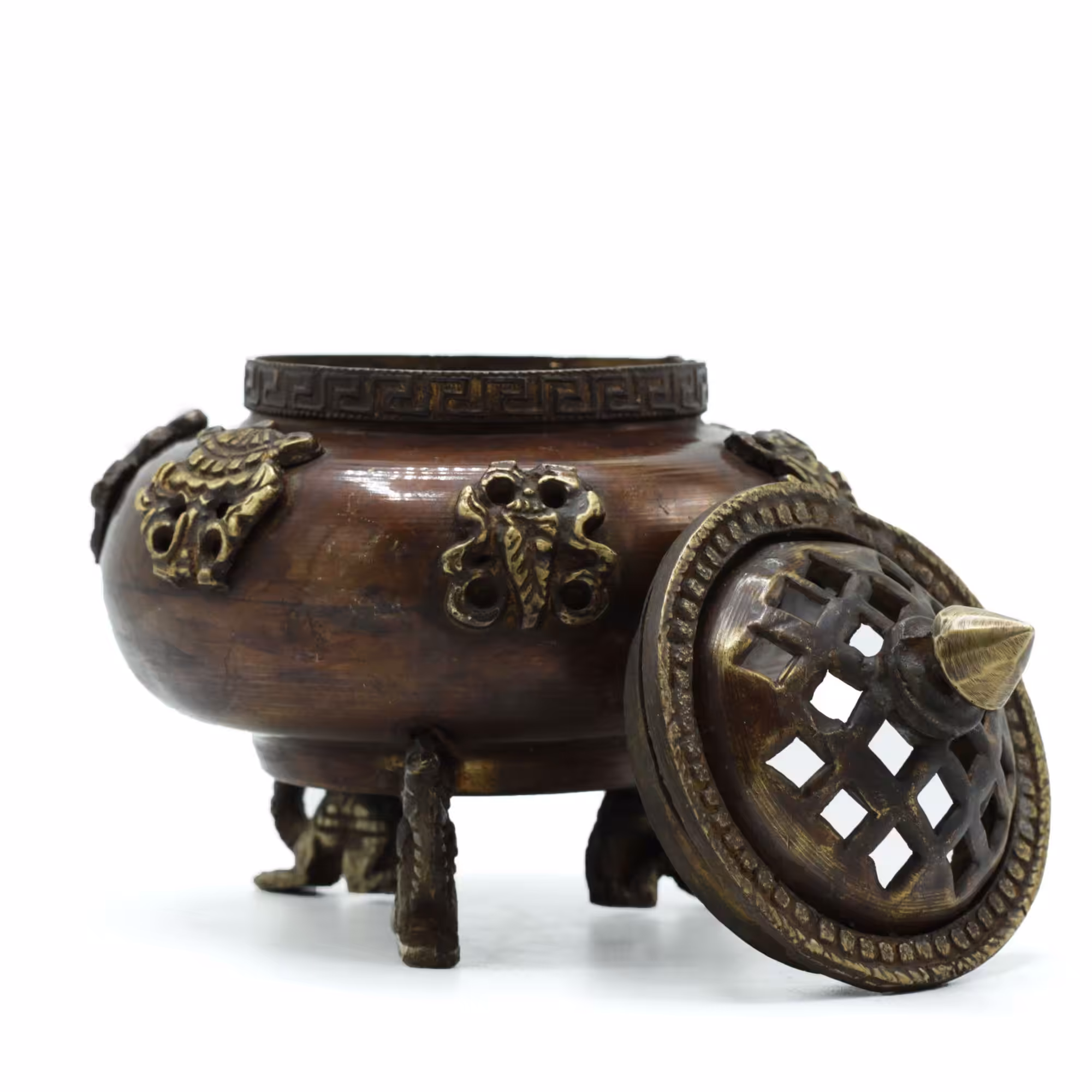 Brass Tibetan Incense Burner – Six Symbols Standing Pot
