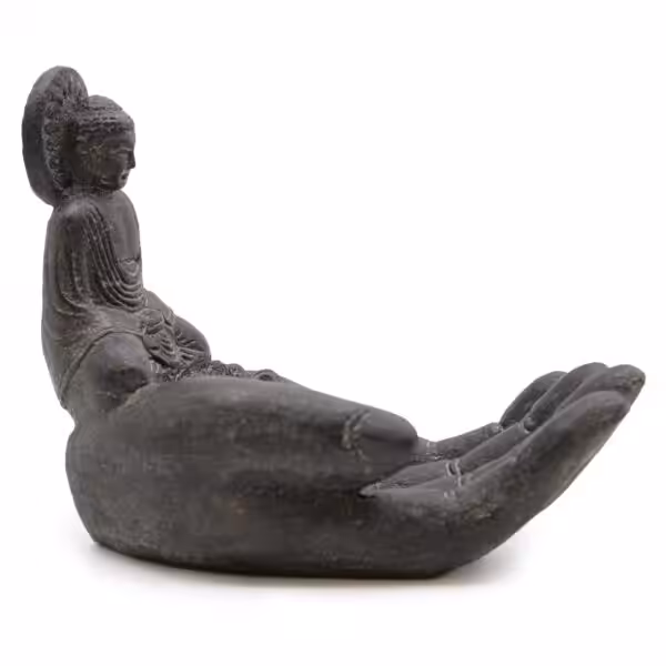 The Buddah & Hand Incense Burner in black is a beautifully crafted stone incense holder that combines artistry with functionality. Perfect for those who appreciate both meditation and aesthetic decor, this piece not only serves as a practical tool for burning incense but also enhances the ambience of any room, bringing a sense of calm and serenity to your environment.