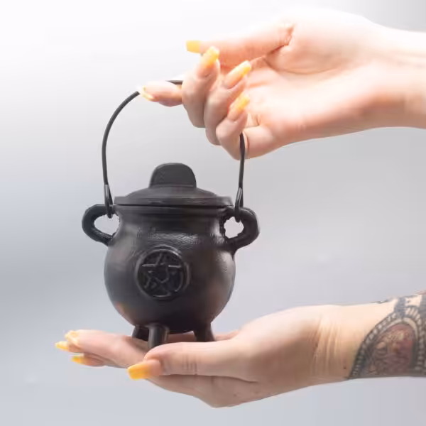 The Cast Iron Cauldron with Pentagon, measuring 6.5x13cm, is an essential addition to any collection of ritual bowls and cauldrons. This beautifully crafted piece not only serves as a functional tool for your spiritual practices but also adds a touch of elegance to your altar or workspace. Whether you’re performing a ritual, burning herbs or simply using it for decoration, this cauldron is designed to meet your needs with style and durability.
