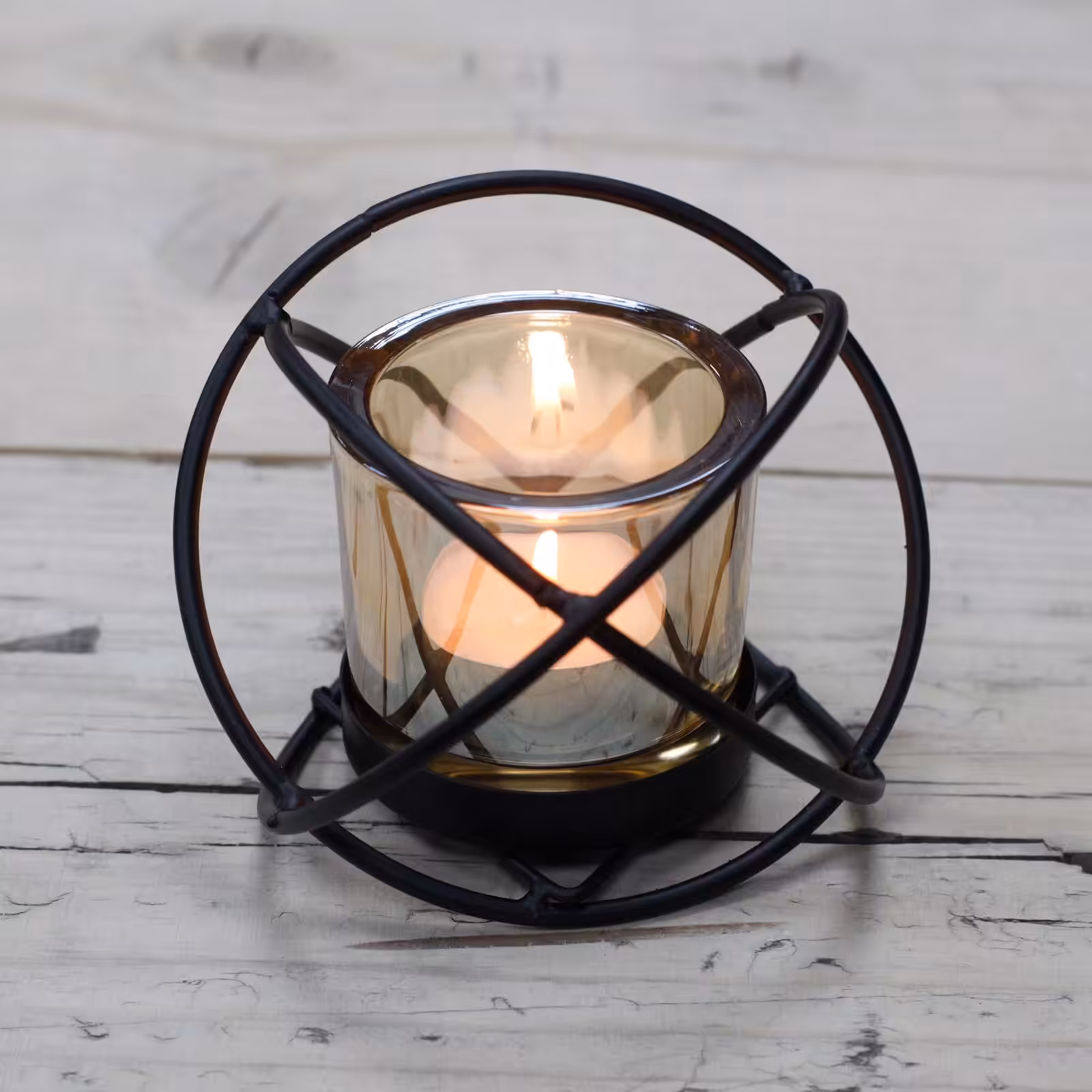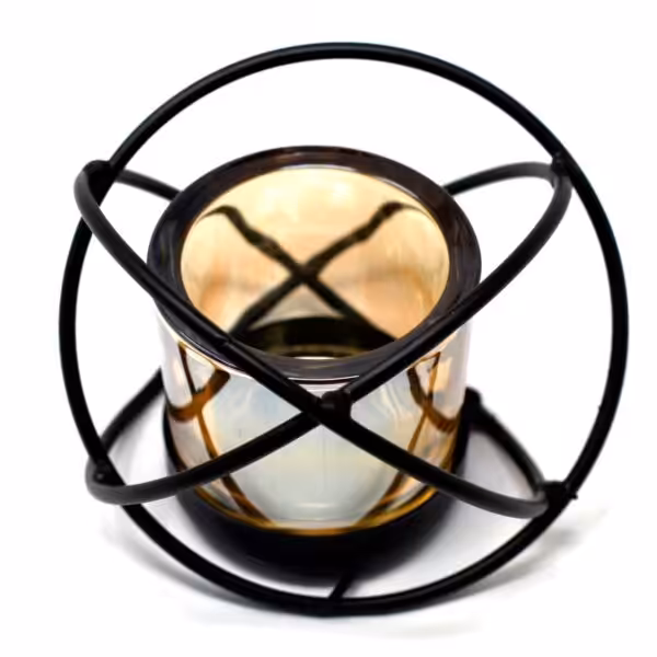 Made of iron.Size of the Candle Holder: Lenght: 11 Width: 11cm, Height 8.5cmSize of the Glass: Diameter 6.5cm, Height 6cm