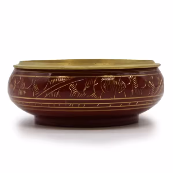 Charcoal Incense Jar in beautiful burgundy colour. Decorated with golden patterns, handmade in India. This incense jar can be used during rituals for purification or activation of the Root chakra.