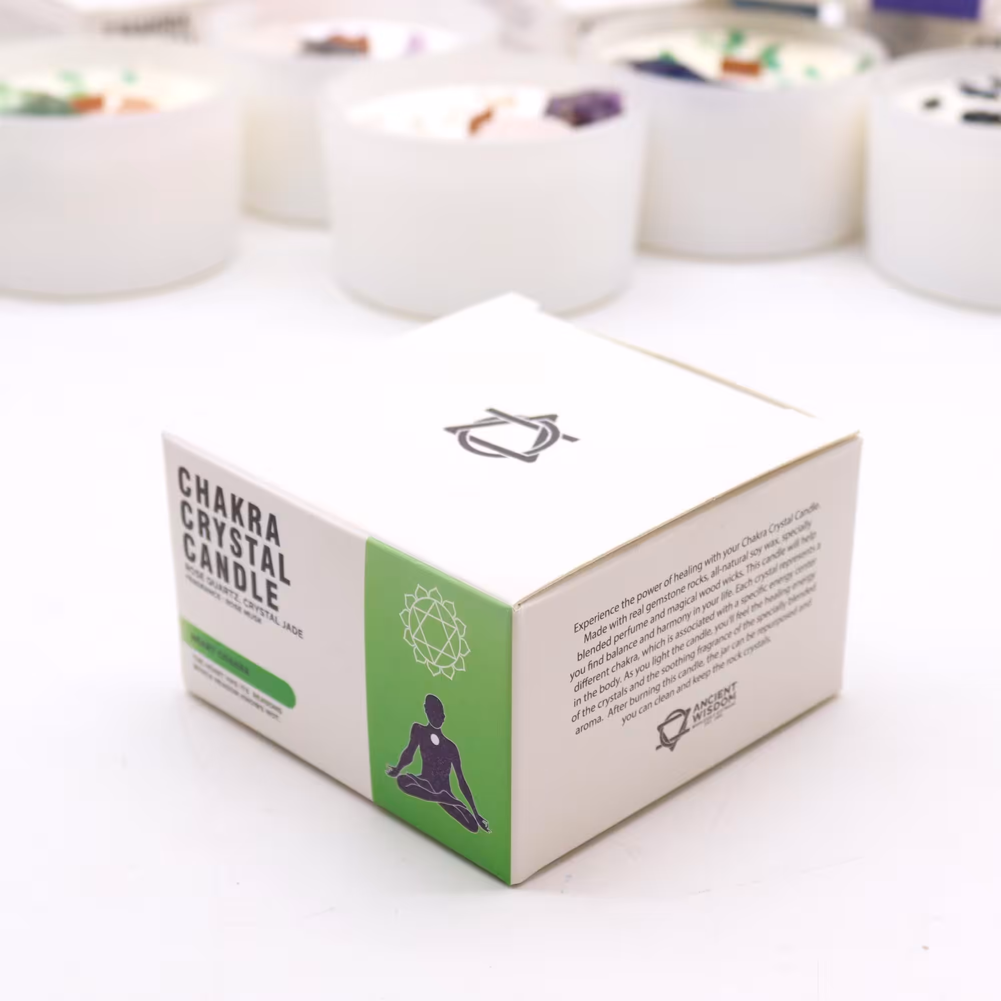 Chakra Crystal Candle – Heart Chakra: Embrace Love and HarmonyThis lovely candle transcends illumination; it's a conduit for embracing love and harmony.💚 Heart Chakra: Symbolises love, compassion and emotional balance. 🌹 Fragrance: Infused with the captivating scent of "Rose Musk," a fragrance that evokes feelings of love and serenity. 💎 Gemstones: Adorned with Rose Quartz and Crystal…