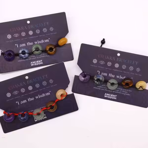 On each header card you can find the empowering affirmation, "I am the wisdom." This affirmation serves as a powerful reminder of inner knowledge and self-discovery, encouraging wearers to embrace their wisdom and insights.