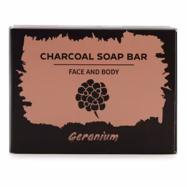 Geranium Charcoal Soap with added pure essential oil, argan oil, hempseed oil and shea butter.