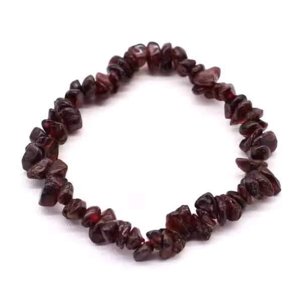 Chip Stone Bracelets with Blood Garnet from Ancient Wisdom with gemstone chips on a strong elastic thread.