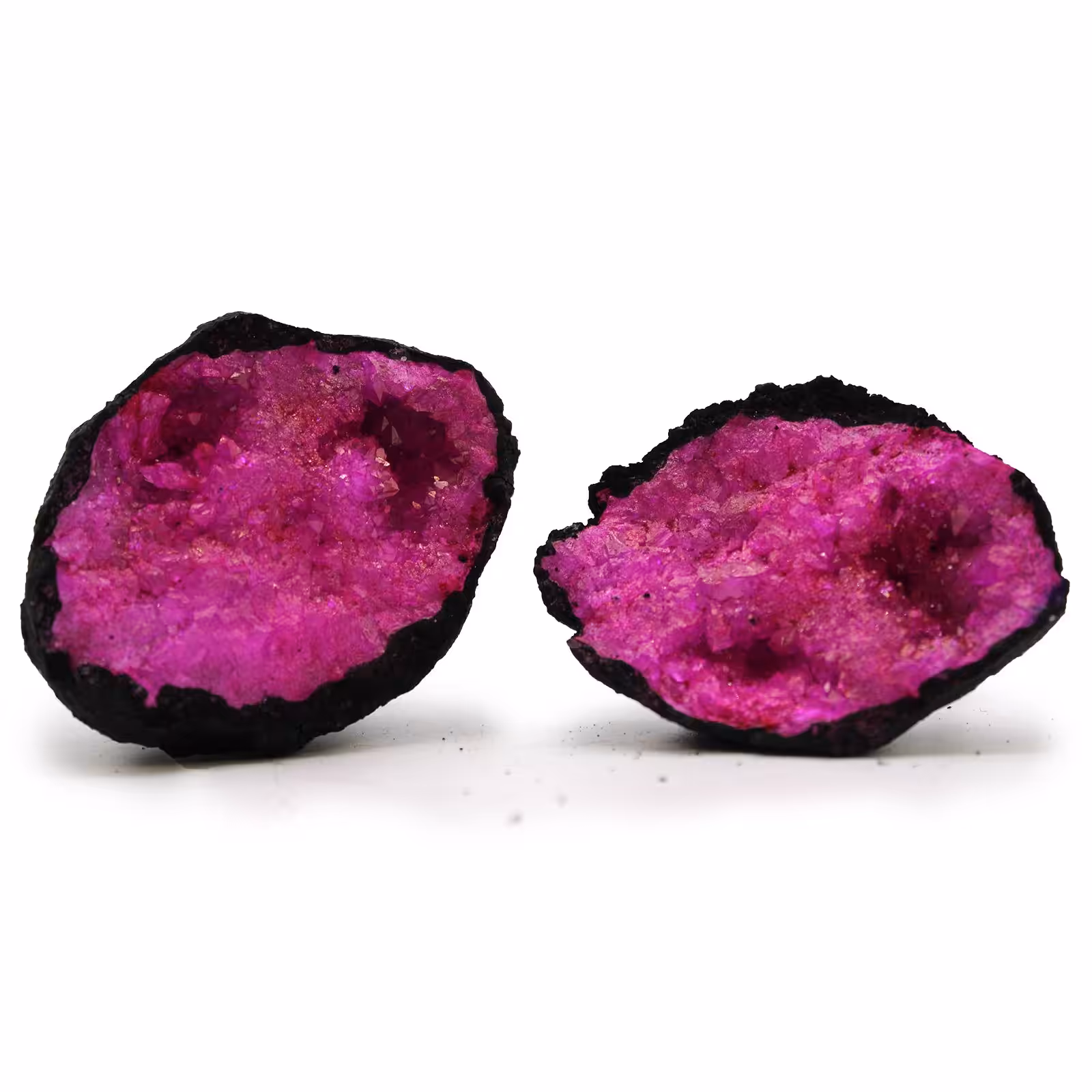 This beautiful artificially Coloured Calcite Geode – Black Rock – Dark Red/ Pink. offers its colour once opened, the crystals which formed there are magnificent.