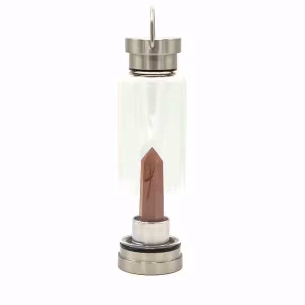 Crystal Infused Glass Water Bottle – Invigorating Red Jasper – Obelisk