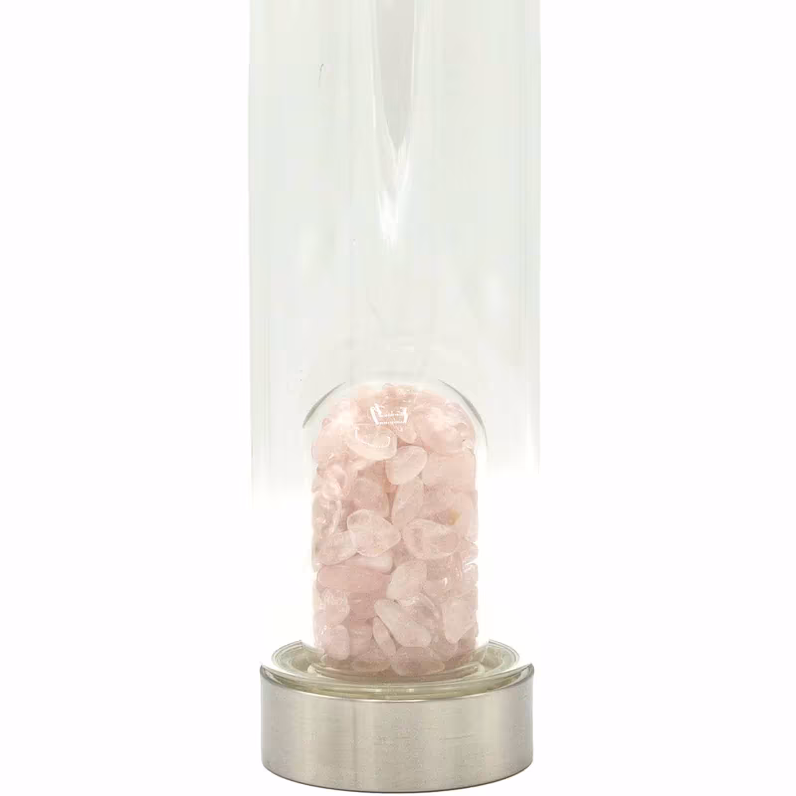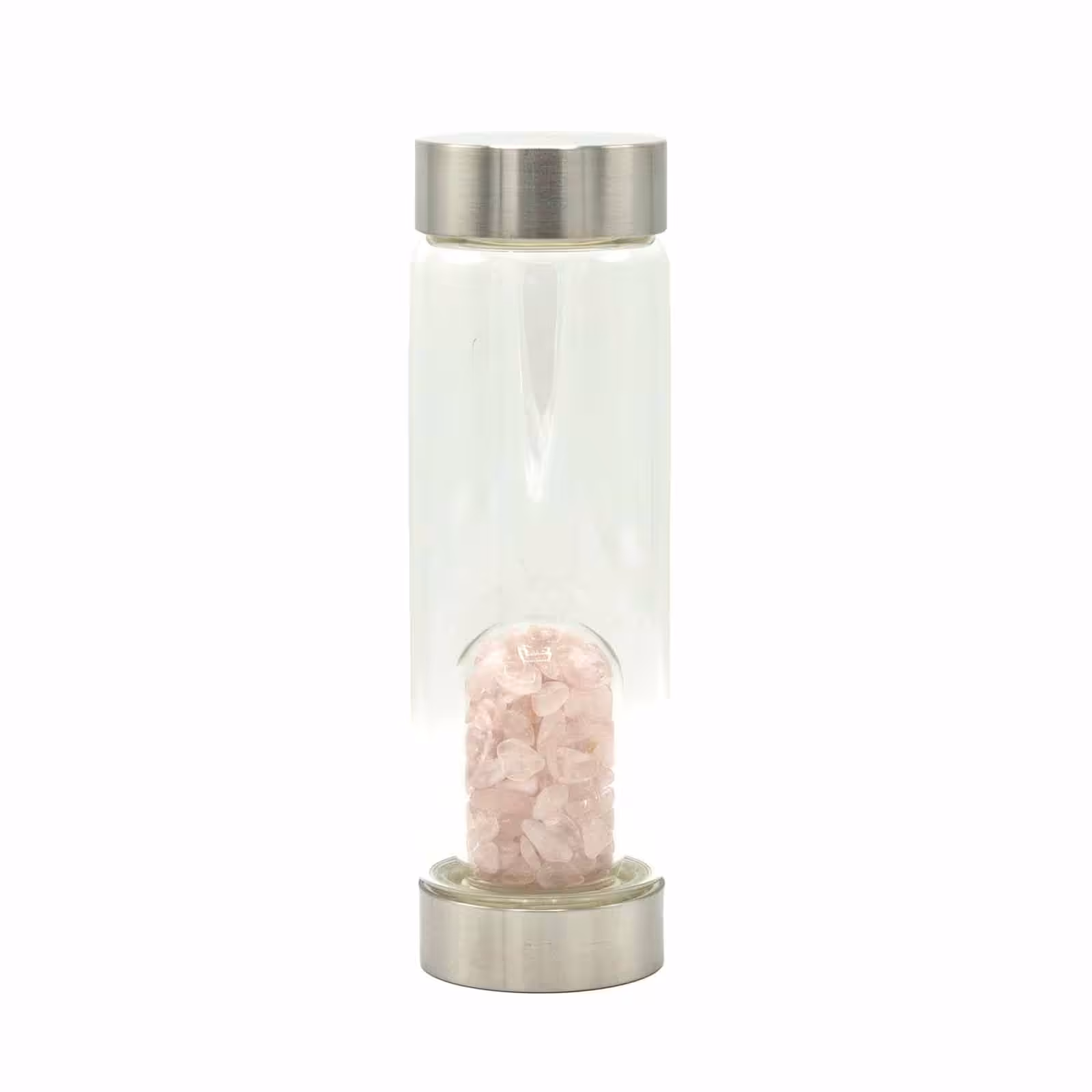 Crystal Infused Glass Water Bottle – Rejuvenating Rose Quartz – Chips