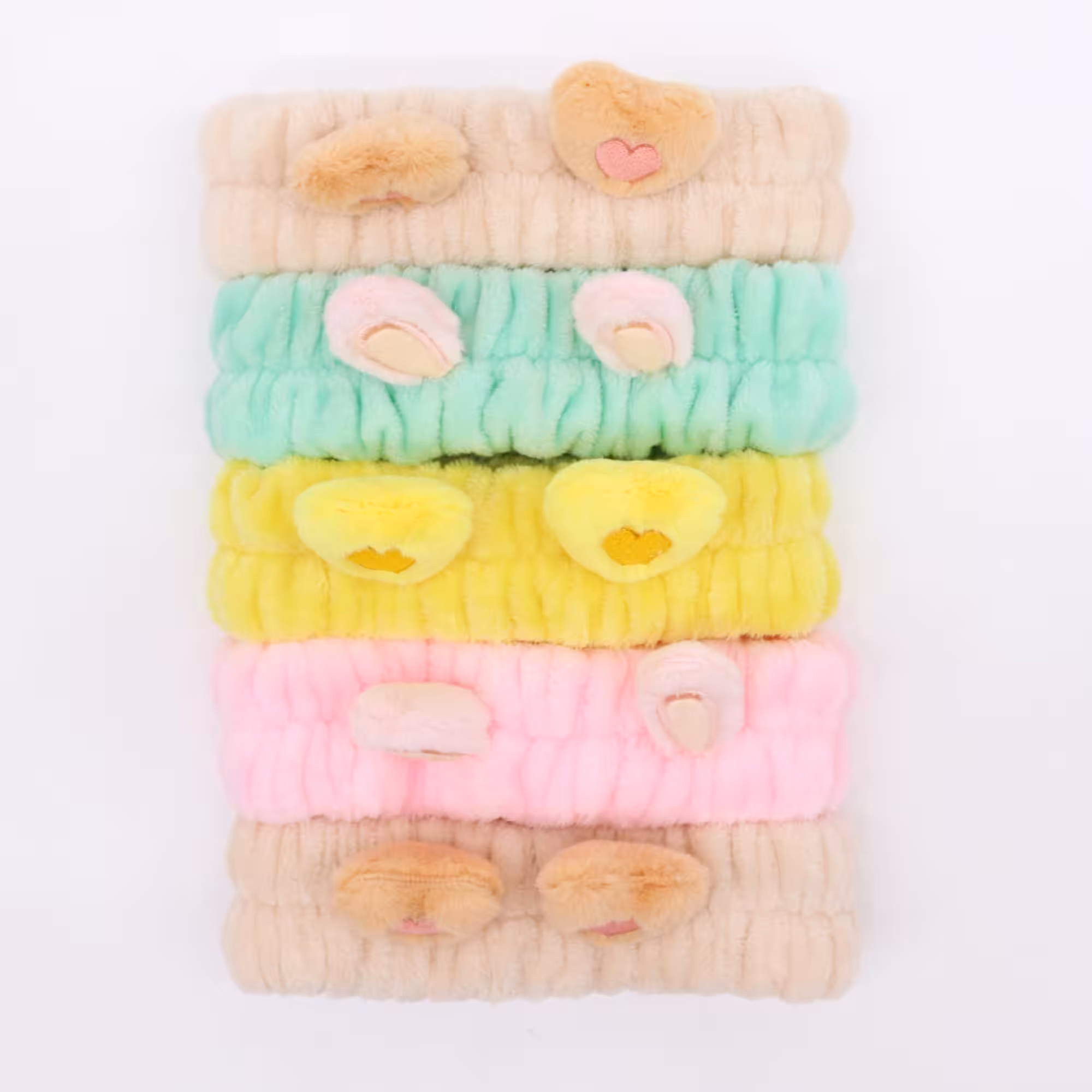 Designed to add a playful touch to your product range! This pack includes 5 headbands, each featuring adorable heart and ear designs that are sure to catch the eye of your customers. Crafted from soft flannel polyester, these headbands offer both comfort and functionality, making them perfect for everyday beauty routines, spa days or as a fun fashion accessory. With a variety of charming colours and designs, these headbands are an ideal addition to your inventory, appealing to customers of all ages.
