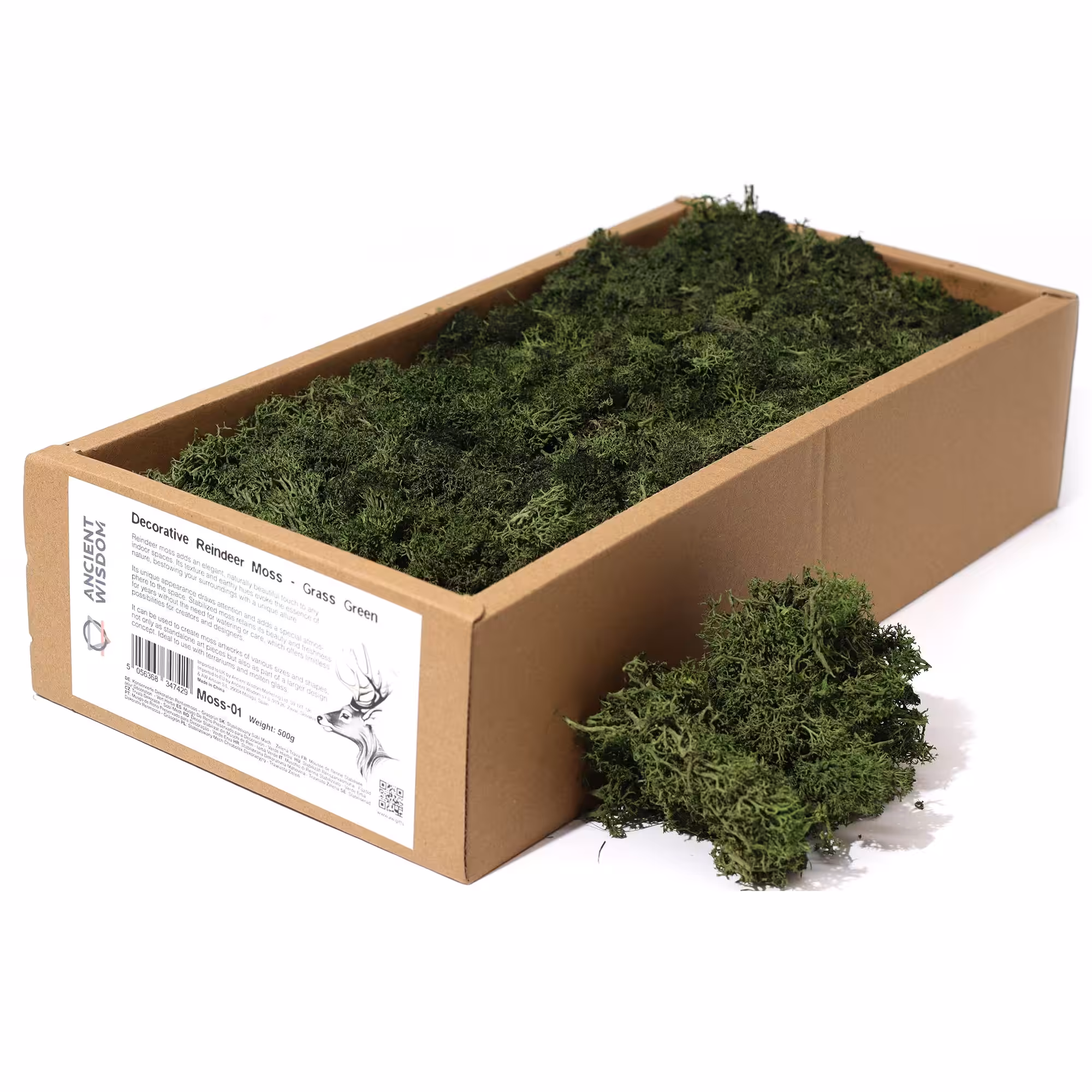 1st Grade Quality Decorative Reindeer Moss in a vibrant grass green shade is perfect for crafting, floristryand home décor. This premium moss offers a soft, natural texture and long-lasting colour.