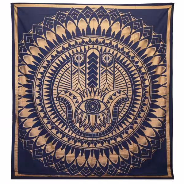 Double Cotton Bedspread + Wall Hanging – Hamsa – Blue Gold