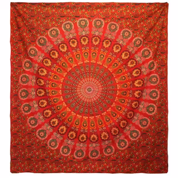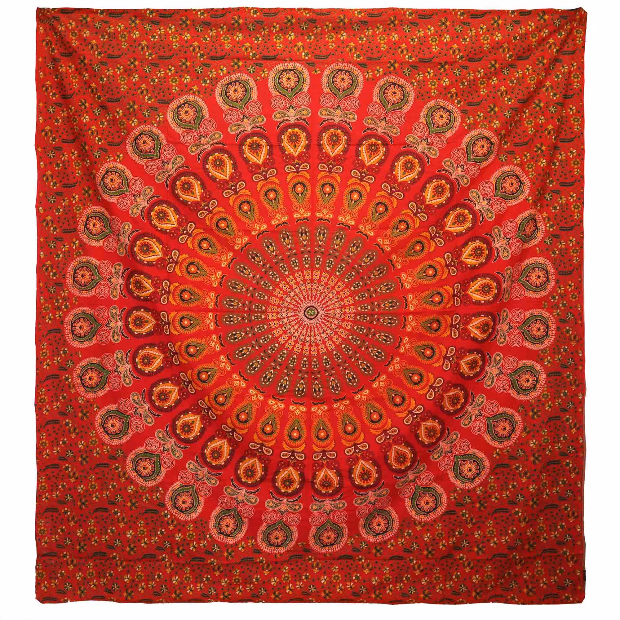 Double Cotton Bedspread + Wall Hanging – Peacock Mandala – Red