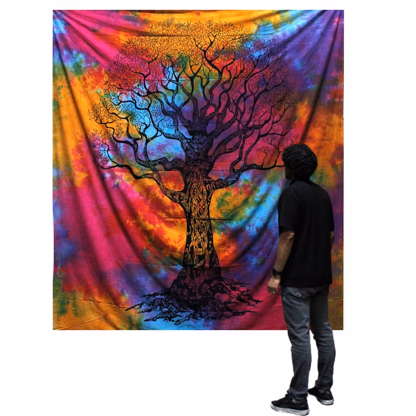Double Cotton Bedspread + Wall Hanging – Winter Tree