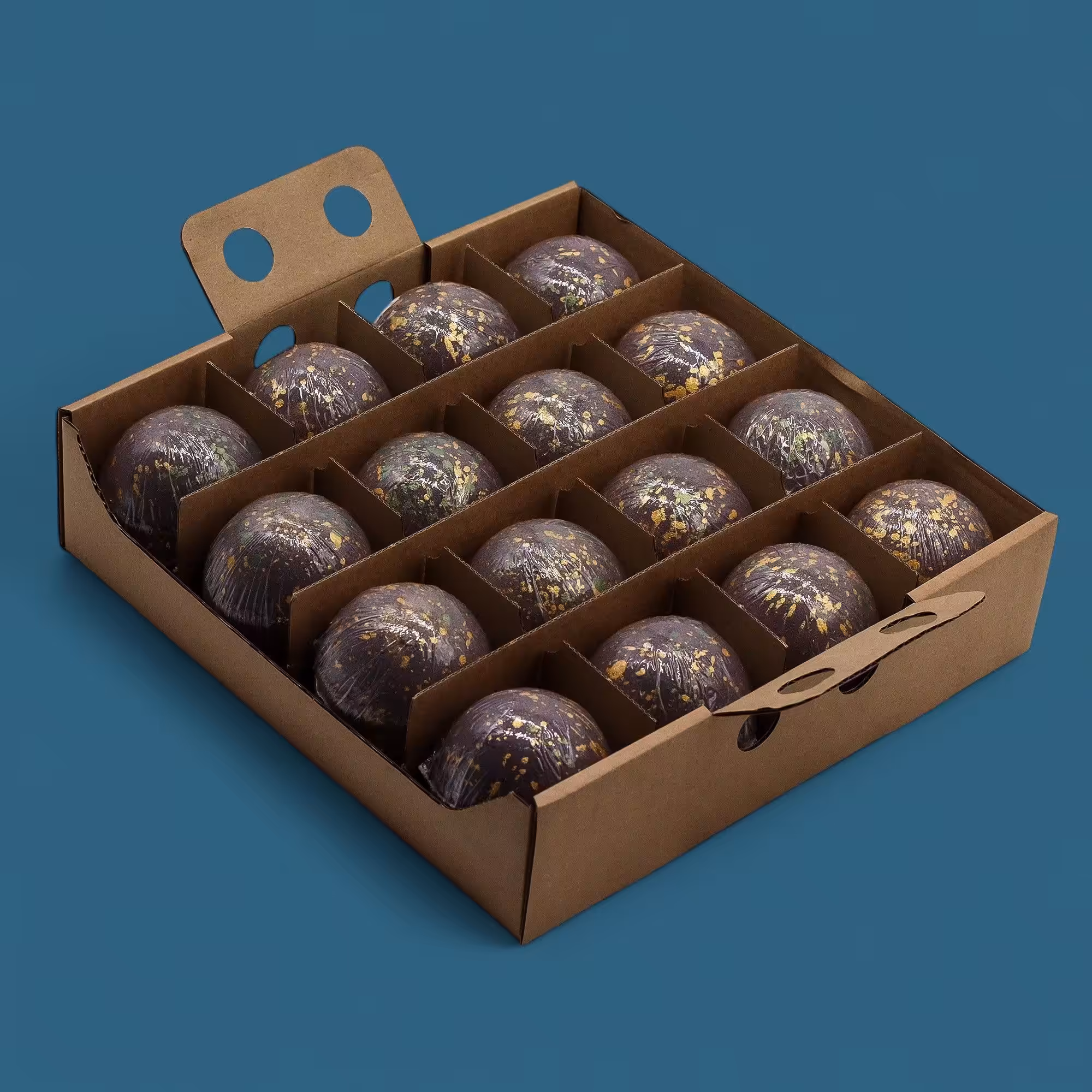 Let the top notes of honey and saffron whisk you away into a sweet, golden opening, mingling with luscious fruits and a delicate touch of bergamot. As the bath bomb dissolves, a heart of velvety chocolate, rose, jasmine and clove emerges—sensual, warm and irresistibly rich.