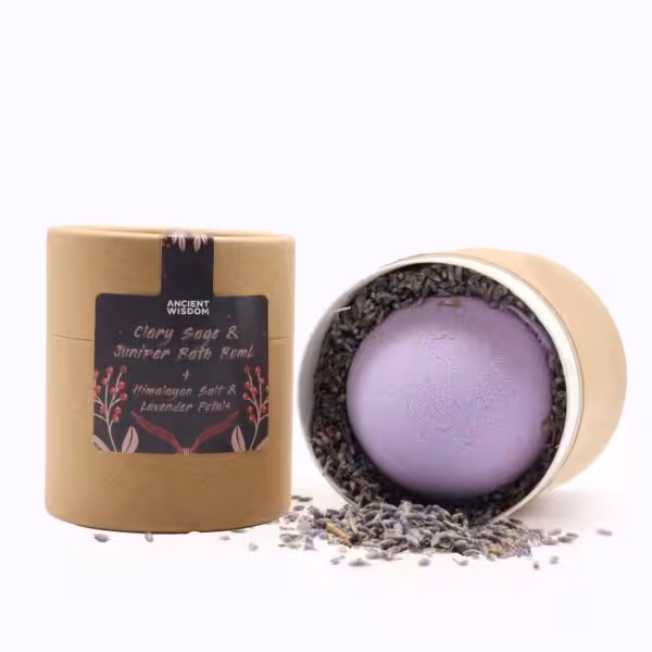 This lovely set includes a Clary Sage & Juniper Bath Bomb, accompanied by mineral-rich Himalayan Bath Salt and delicate Lavender Petals.