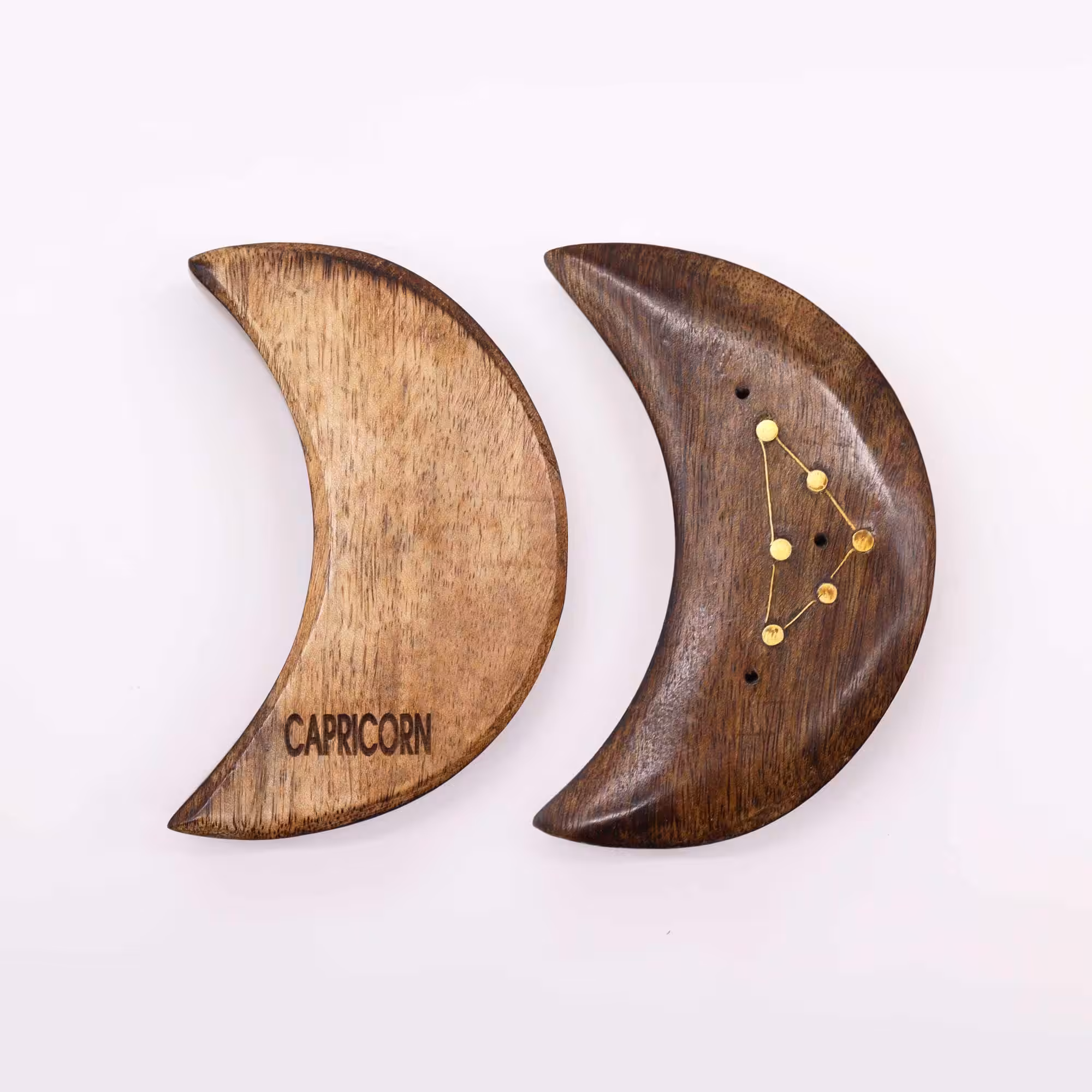 Crafted from high-quality materials, these burners are not only visually stunning but also durable, ensuring they become cherished pieces for those who appreciate both aesthetic and functional value. The brass covering adds a touch of sophistication, creating a beautiful contrast with the moon-shaped base and engraved zodiac sign.