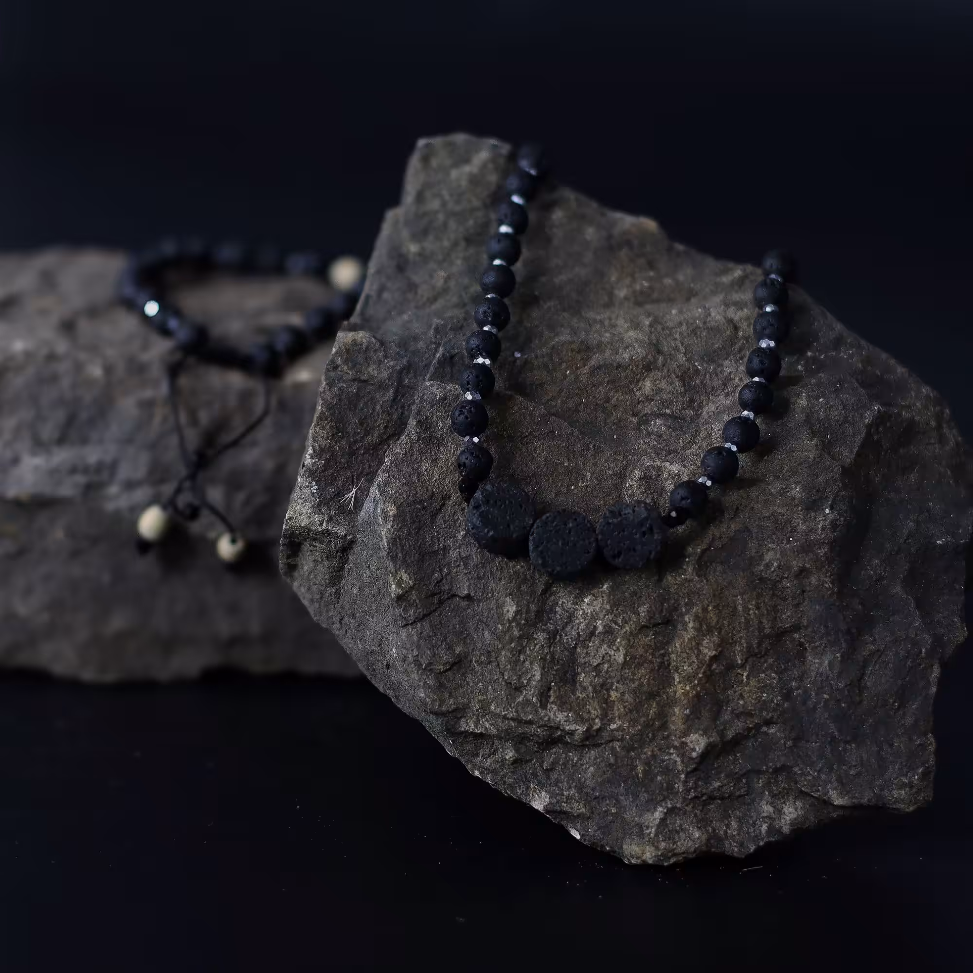 Handcrafted in Bali from natural lava stone, this necklace channels the raw, grounding energy of the earth. Its rugged texture and deep, earthy tone are a reminder of our connection to nature and the quiet strength it gives us.