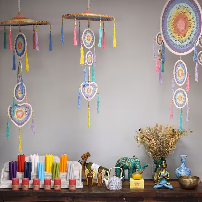 Our dreamcatchers have been carefully crafted by talented artisans in Indonesia. The best place to hang them is by the window or on the wall of the bedroom. After all, the role of a dream catcher is to stop bad dreams. These dramatic dreamcatcher creations will add a truly exotic touch to your home.
