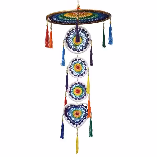 Crafted with vibrant hues that flow seamlessly into one another, this dreamcatcher serves as a captivating focal point. Its intricate design features a large hoop adorned with colourful feathers and beads, ensuring it catches the eye and sparks conversation. Beyond its aesthetic appeal, the dreamcatcher is believed to filter out negative energy and bad dreams, promoting a restful night’s sleep and a peaceful atmosphere.