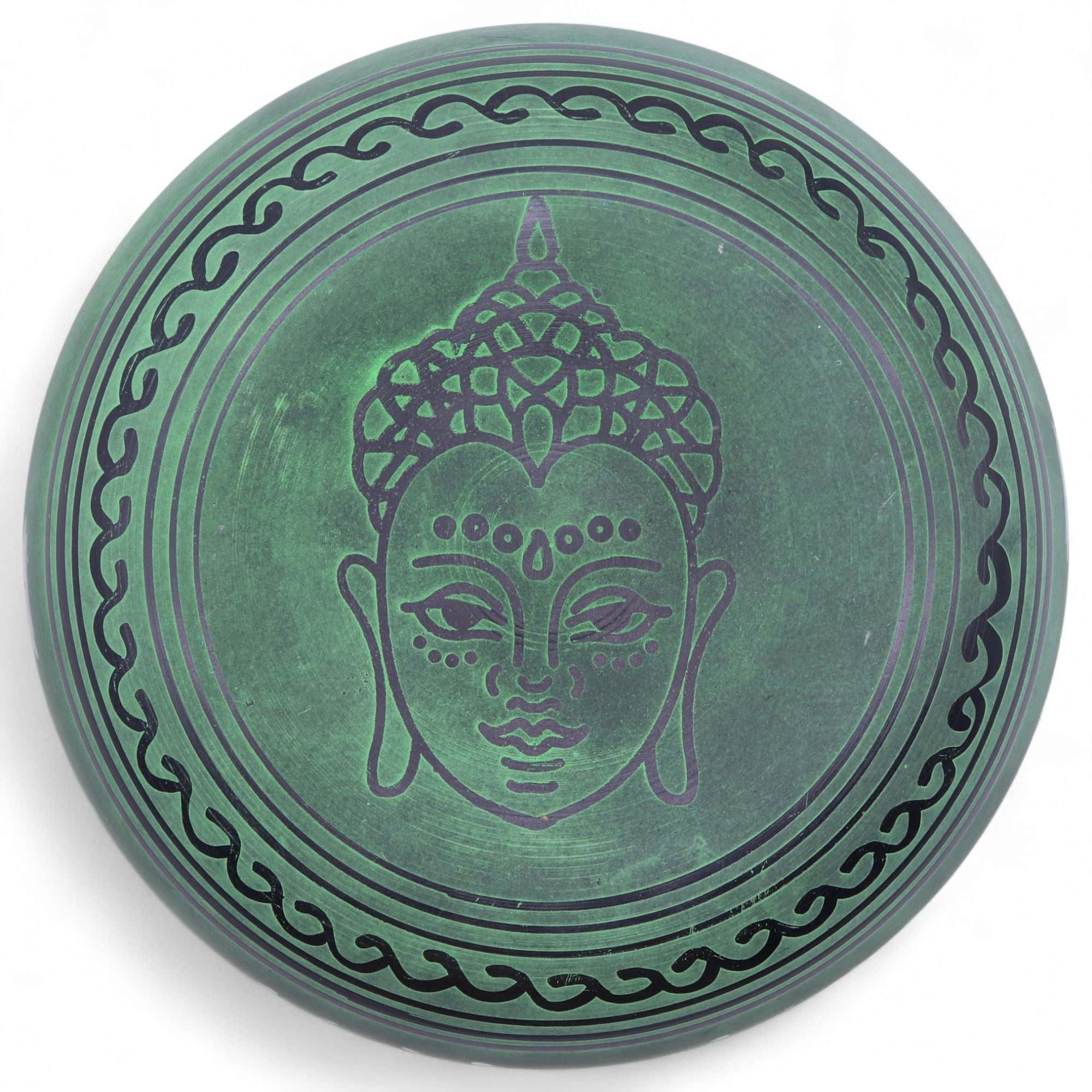 Add depth and calm to your space with the Moss Green Mushroom Singing Bowl. Crafted from brass and finished in rich green tones, this extra-loud singing bowl delivers powerful, long-lasting vibrations ideal for meditation, yogaand sound therapy.