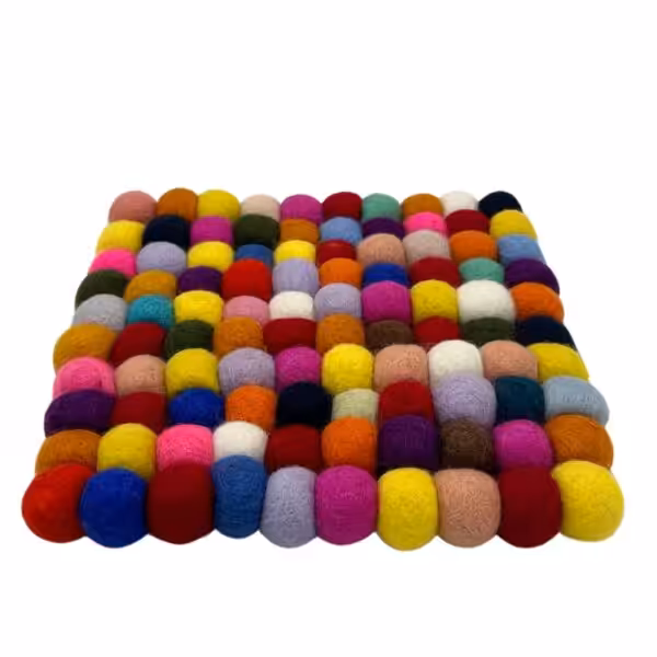 Crafted from high-quality felt balls, this placemat offers durability and a unique design that stands out. Its square shape is versatile, allowing it to accommodate various table sizes and arrangements. The multi-colour scheme adds a playful element to your dining experience, making meals more enjoyable while also serving as an eye-catching centrepiece.