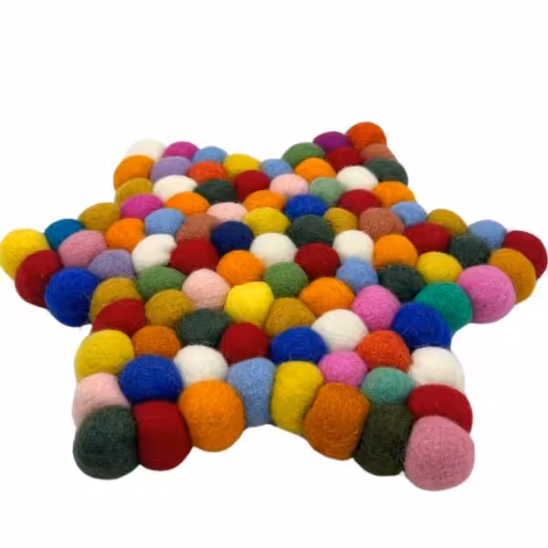 Crafted from high-quality felt balls, this centre mat offers a soft yet durable surface that can withstand everyday use. The vibrant colours create a cheerful atmosphere, making it an ideal choice for families with children or anyone looking to brighten up their dining area. The unique star shape adds an artistic flair that sets it apart from traditional mats, providing both functionality and style.