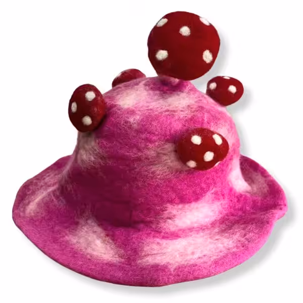 The Felted Mushroom Hat in Shocking Pink is a unique addition to the Felted Mushroom Hats collection, designed to make a bold statement. This eye-catching hat not only provides warmth during the colder months but also showcases a playful, artistic flair that is sure to turn heads wherever you go.