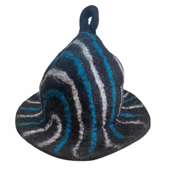Felted Sauna Bowl Hat – Black Blue Streaks