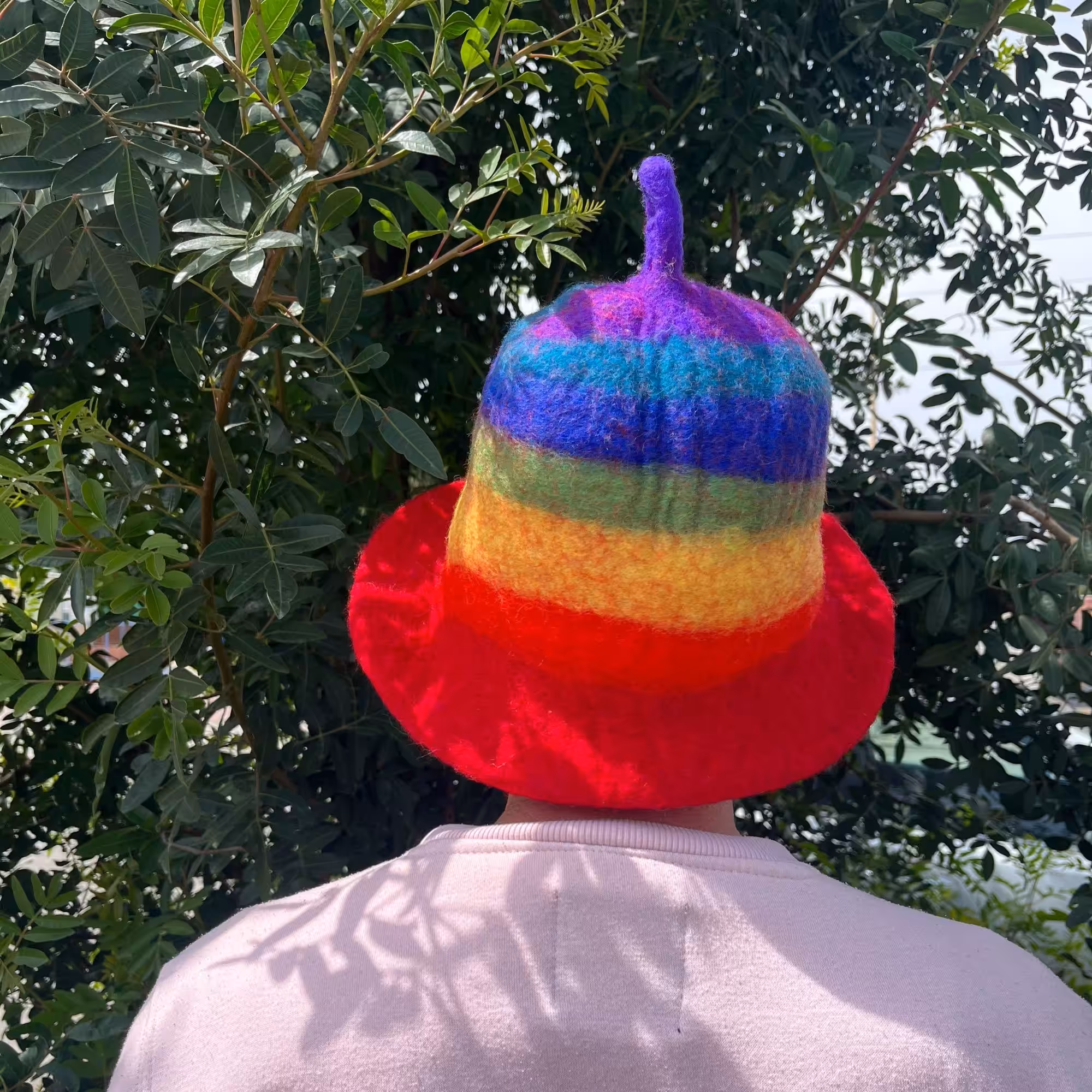 Felted Sauna Bowl Hat – Rainbow