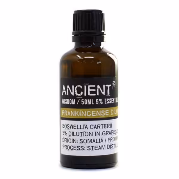 This Frankincense Essential Oil is steam distilled from the resin of the Boswellia carterii tree, of the Burseraceae family and is also known as Olibanum. The word is derived from the French franc meaning luxuriant and was, along with myrrh, the first gum to be used as incense. The tree is indigenous to the Middle East and is said to exist in natural bonsai formation in that parched land. Frankincense is said to symbolize divinity.