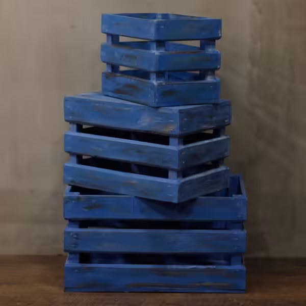 Each box in this set is crafted for durability and functionality, featuring a sturdy construction that can easily hold a variety of fruits and vegetables. The open design allows for easy access and visibility, encouraging customers to browse and select their favourites effortlessly. The bluewash finish not only complements a range of colour schemes but also helps to create an inviting atmosphere that draws shoppers in.