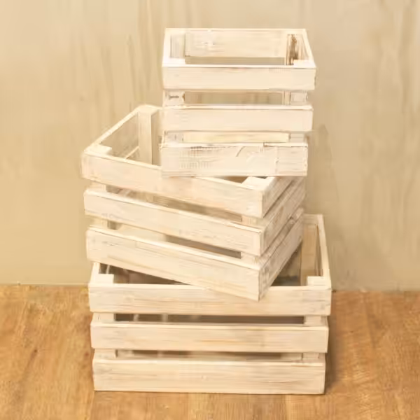 Discover our Fruit Box set of 3 in a stylish whitewash finish, perfect for retail display stands. Ideal for showcasing fresh produce elegantly.