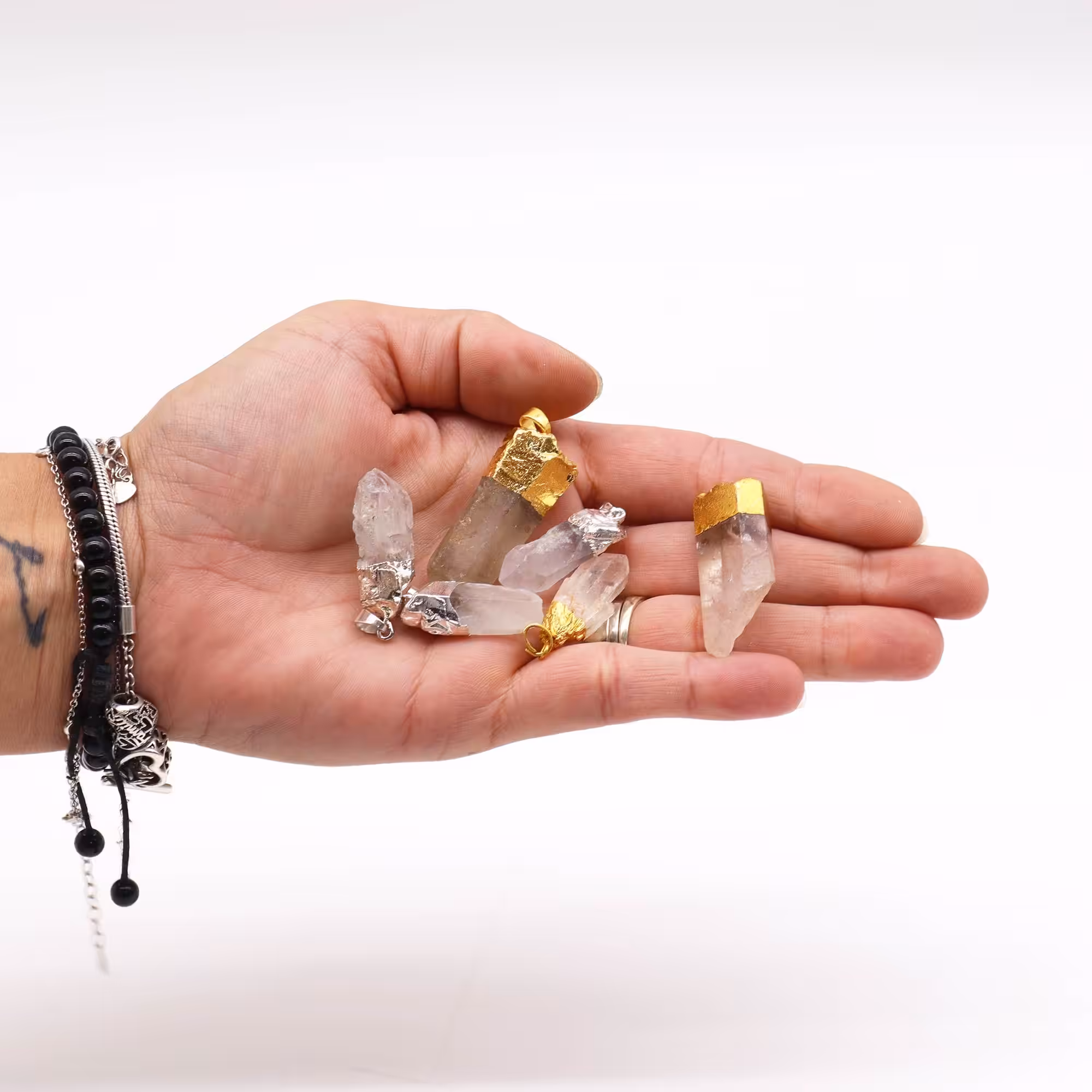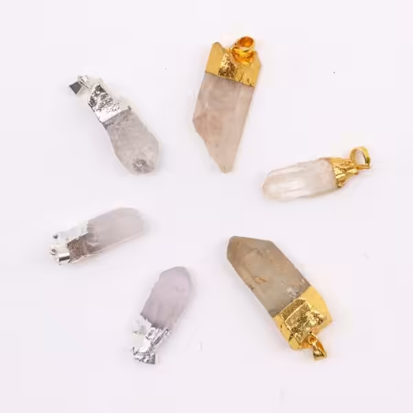 Gemstone Clear Quartz Gold & Silver Plated Pendants (6 assorted)